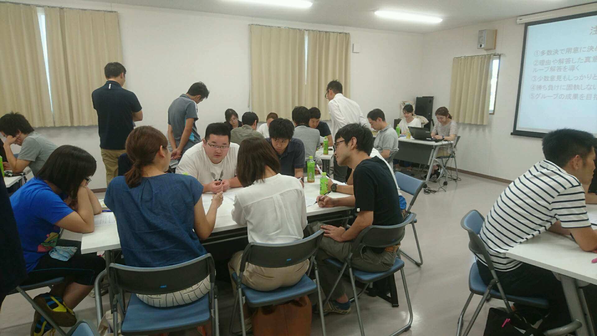 研修委員会主催で法人常勤職員を対象とした研修を実施しました。グループに分かれて、クイズ形式のアイスブレイクを行った後、CCテストにより合意形成を図っていく上での討議の重要性を学びました。